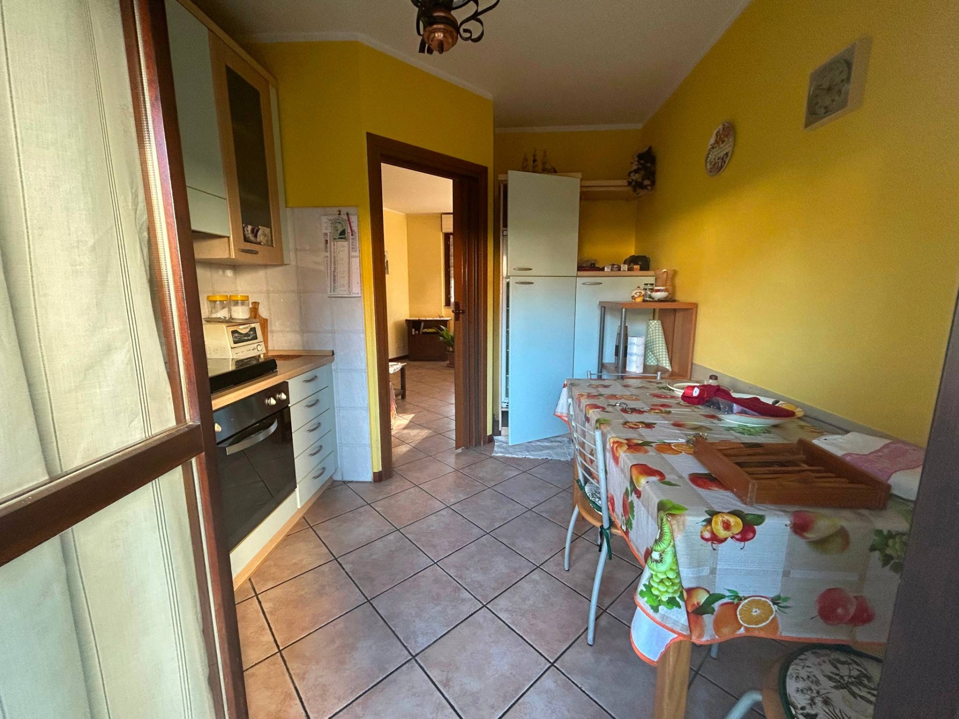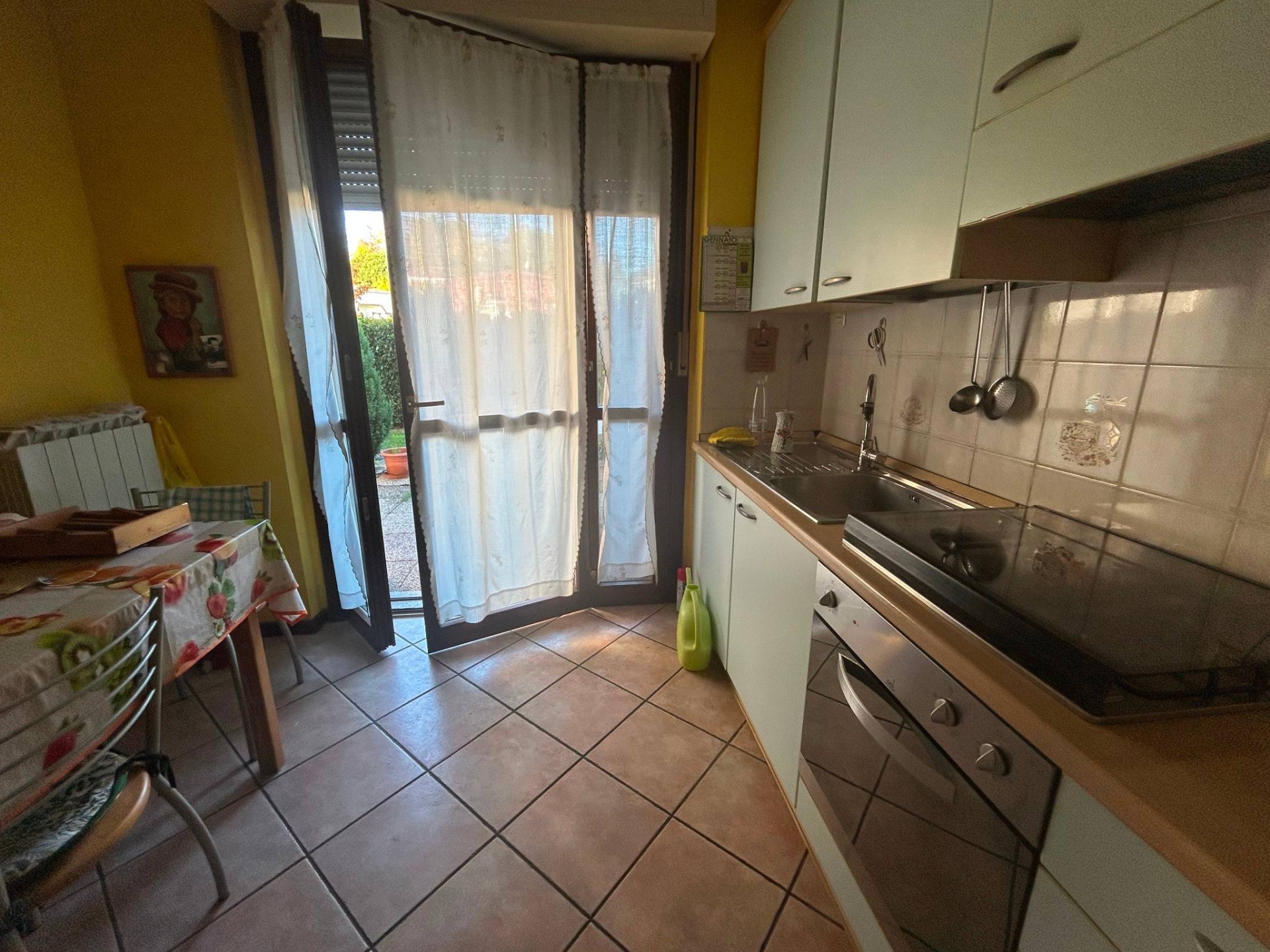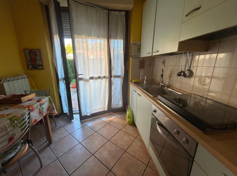 Ingresso, soggiorno, sala pranzo con uscita su un terrazzino, cucina abitabile con uscita nel giardino privato , cameretta sempre con uscita sul terrazzino, camera metrimoniale e bagno.